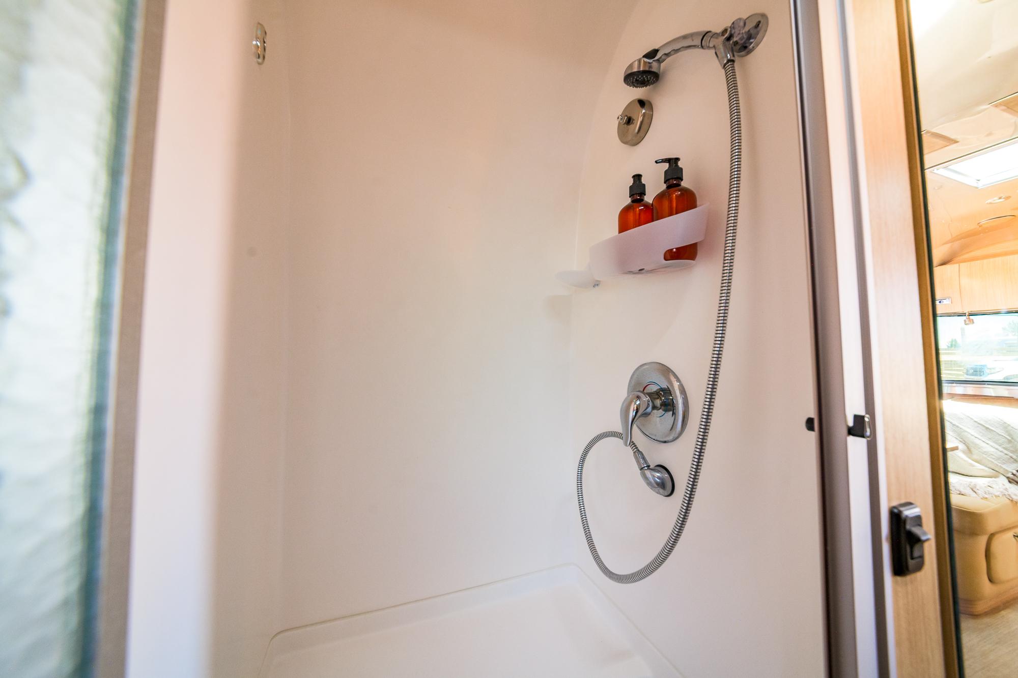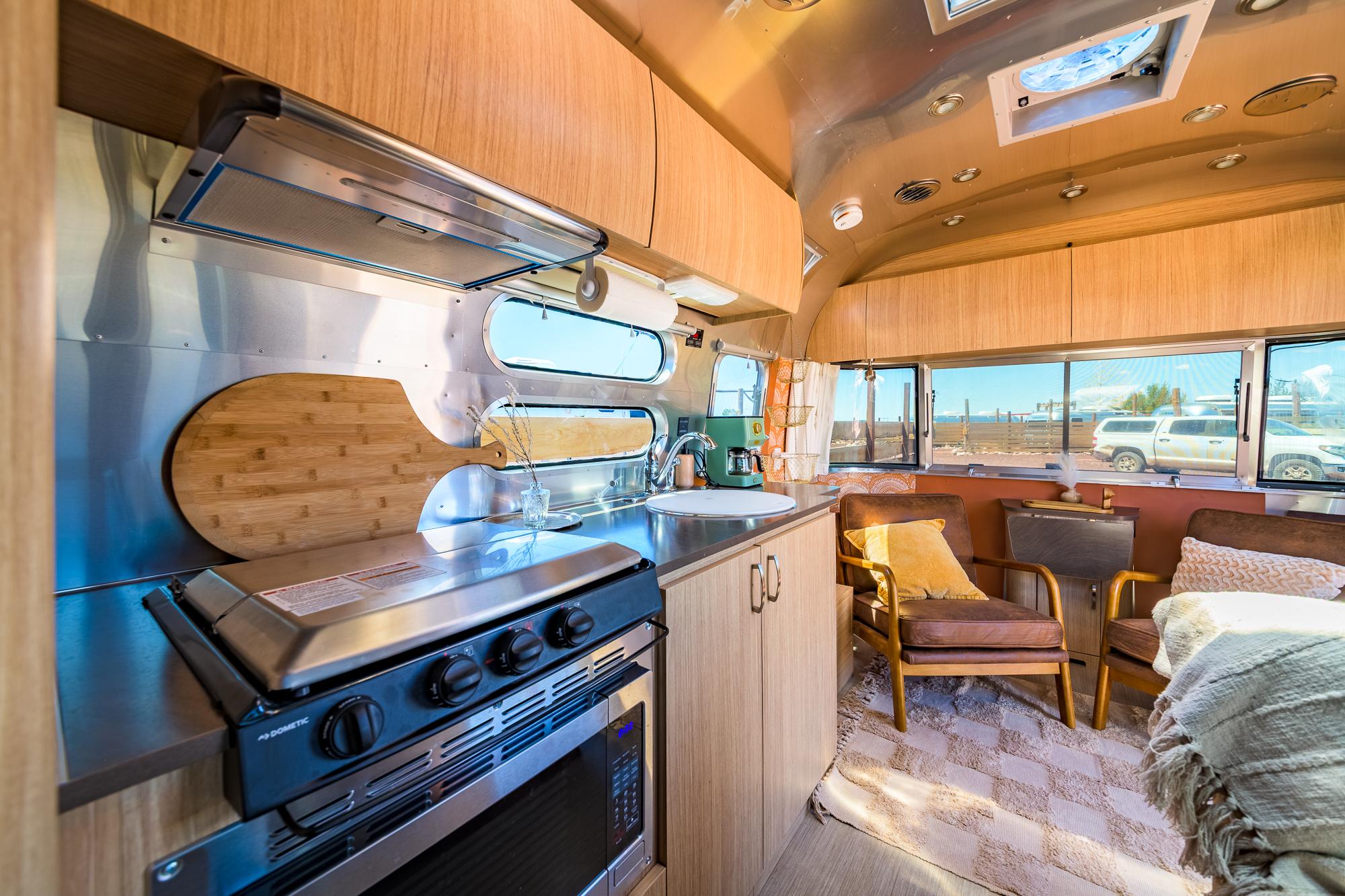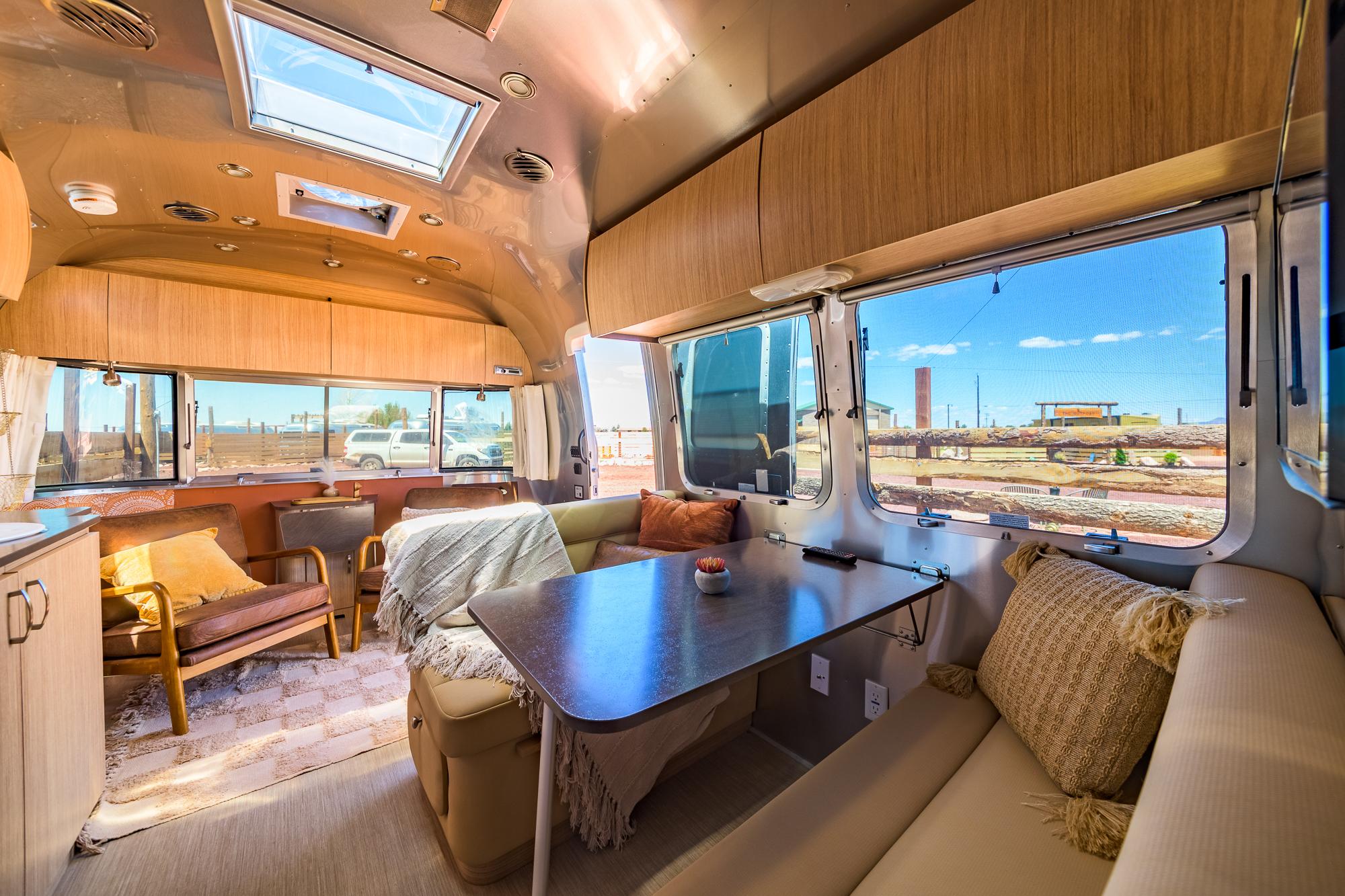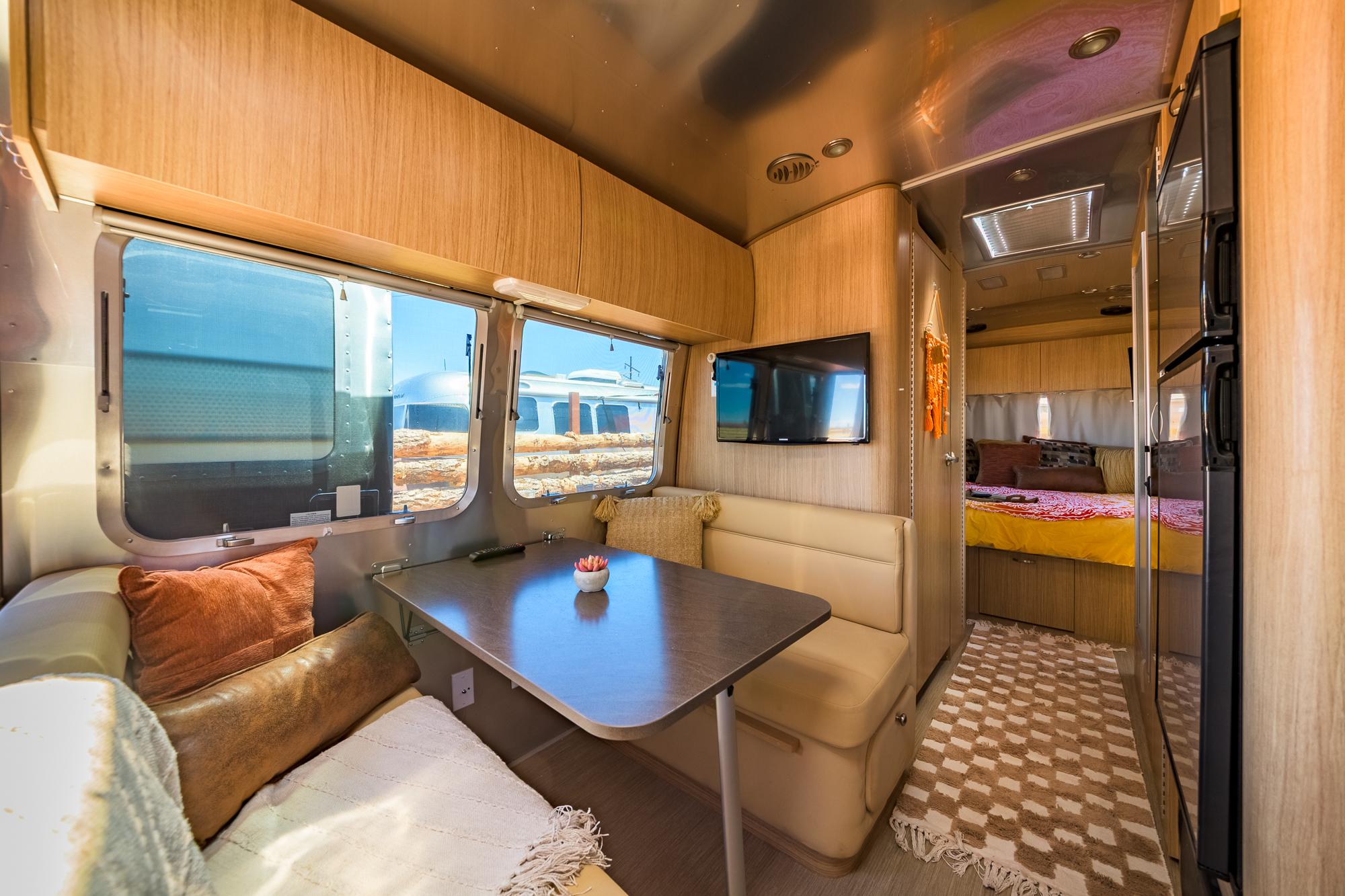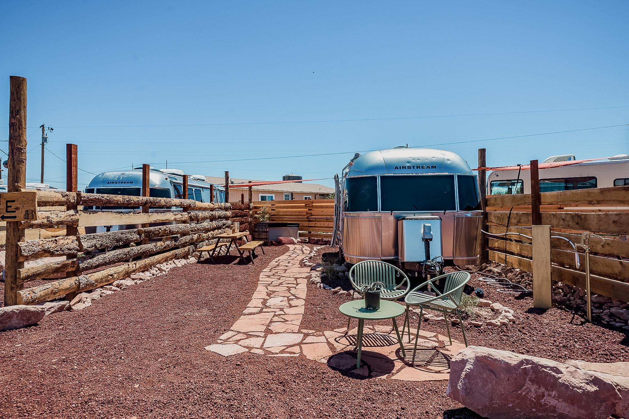 This stylish Airstream is your ultimate glamping escape—complete with your own private hot tub, fenced patio, and outdoor lounge.